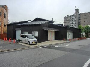 建物の解説をいたしますと、外観は長い庇と、黒く着色された板で囲われた建物で、昔の黒板塀を連想します。お年寄りには子供のころに見たことのある景色と重なると思います。