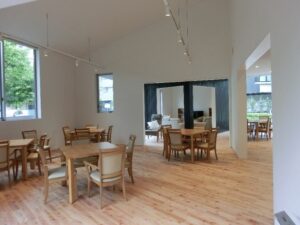 デイサービスとは直接関係ないとは思いますが、この空間は天井の高さが違っているために音響空間としても良い音の響きがあるように感じました。ミニコンサートなど開いたら、楽しい時間が過ごせそうです。