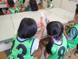 この体験を通じて木のことを知ることは面白いと思う子供もいて、将来建築に興味を持って建築家や大工さん等の建築に携わる人が出てくれたら良いなと思いながら楽しい時間を過ごしました。(後関)