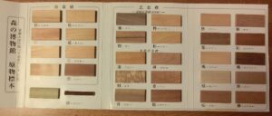 木に興味を持ってくれた子供達には木材の見本帳を見せて木材の違いを感じてもらったり、漢字の勉強で木の名前には必ず木編が付くことや、木編のつかない漆(うるし)という漢字があることなどを覚えてもらいました。