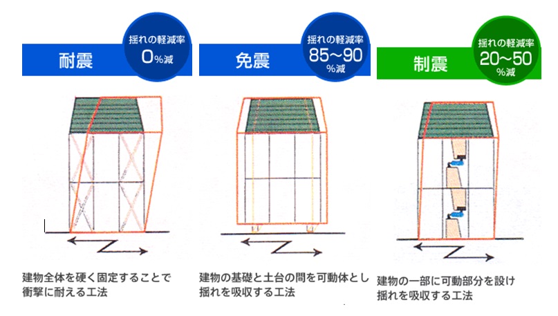 同じ場所でこれだけ被害が違った理由は、建物の強度と、制震によるものだと考えられています。聞いた事があると思いますが、耐震、制震、免震は、それぞれ地震に対してとても有効ですが、一つ一つ目的が違うもので、それぞれの組み合わせによって強い効果を発揮します。