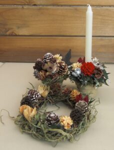 松ぼっくりや木の実など好きなもの飾って、チョット早いクリスマス気分を楽しみませんか。