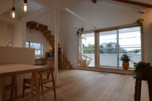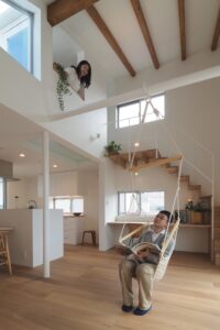 特に2階のリビングにおいて、この景観をピクチャーウインドウで切り取るように見せることでランドスケープをインテリアに取り込み、明るく開放的な居住空間をより美しく豊かなものとしています。家族がどこにいても 楽しく過ごせるような住宅です。