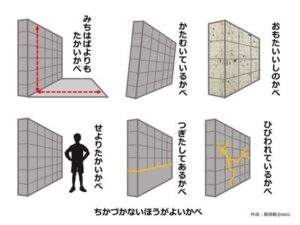 外壁に大きなひびが入っているような建物は、壁が落ちる可能性がありますのでこれも注意が必要です。