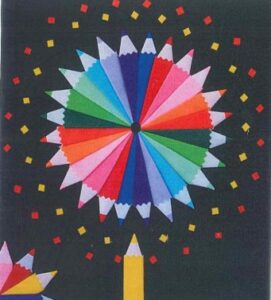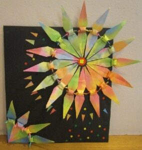 毎年好評の花火を折ります。鉛筆と鶴の2パターンです。