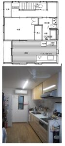 O様は車の免許証を返納し車を処分された事と奥様の腰痛もあって、建物内の駐車場を9畳のダイニングキッチンに改修しました 。