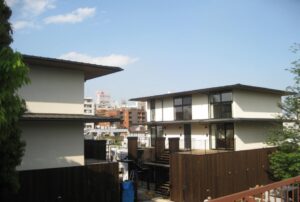 上記写真は今年初めに完成した共同住宅ですが、大断面集成材を使った3階建てです。