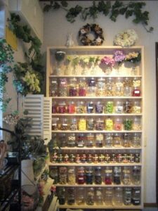 店内はポプリの香りがただよい 手作りの小物や雑貨が所せましと置かれています。